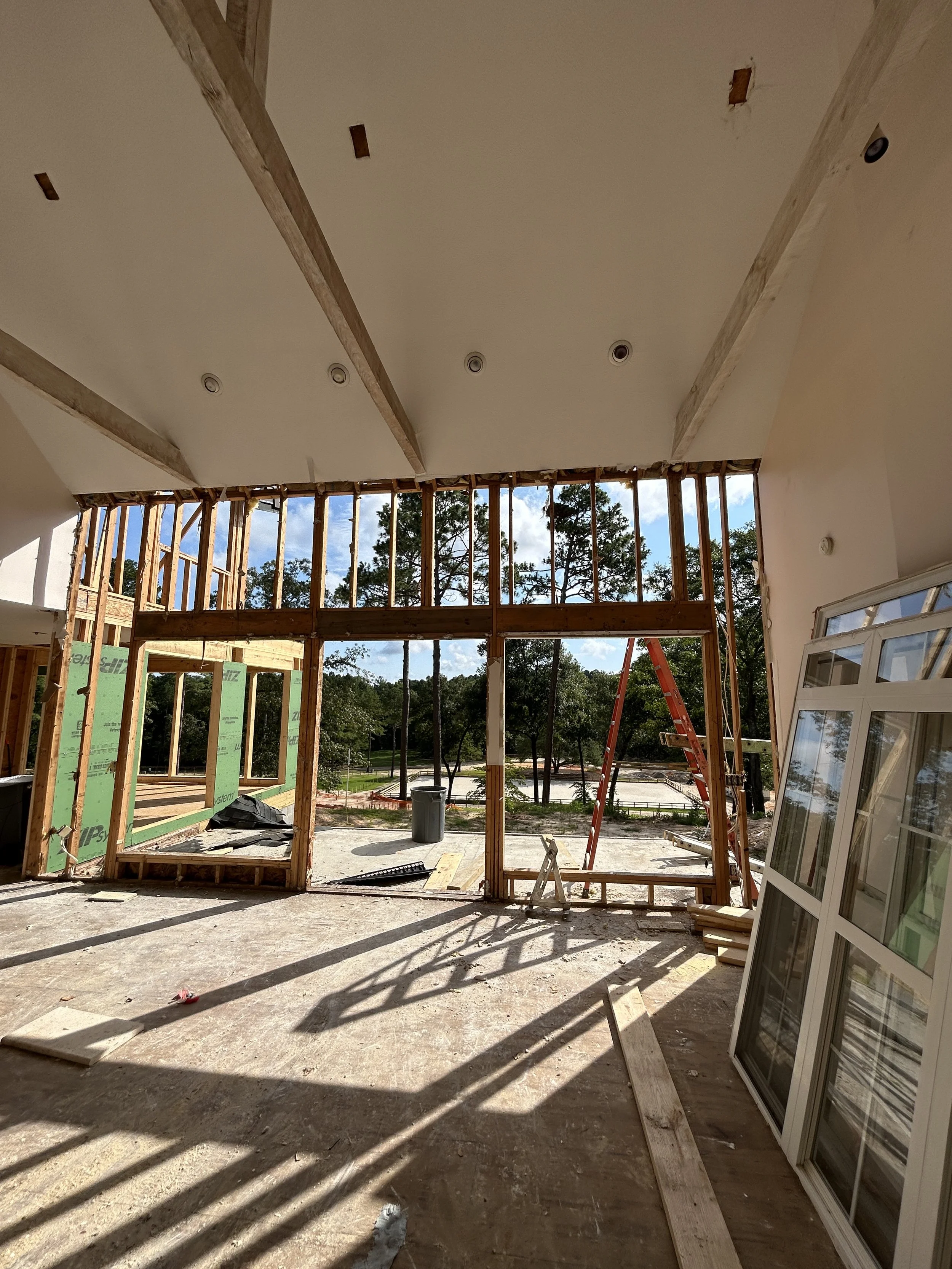 What was once a combined office and bedroom is now being transformed into a spacious primary suite. This area offers more functionality for a primary bedroom due to its generous square footage and unobstructed views of the backyard.